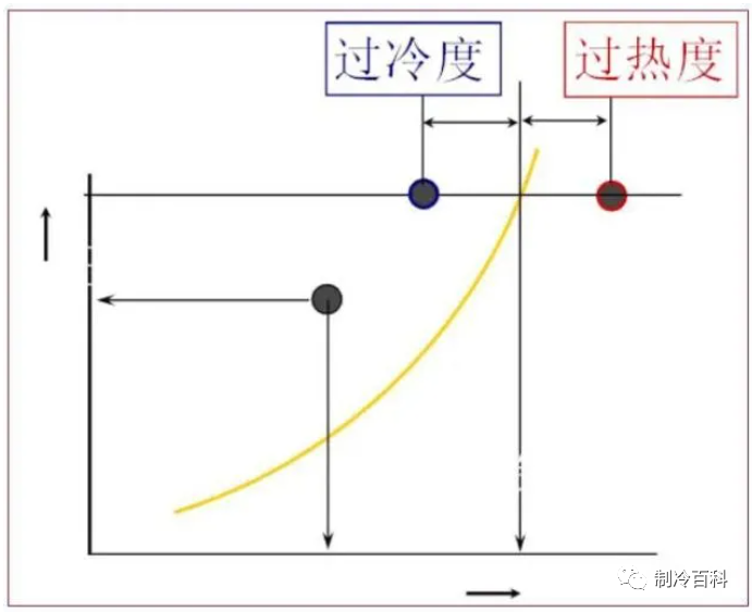 過(guò)冷度的定義:冷凝器冷凝壓力對(duì)應(yīng)的飽和液體溫度和冷凝器出口液體實(shí)際溫度的差值。 工程上,一般將排氣壓力近似看作冷凝壓力,排氣壓力對(duì)應(yīng)的飽和液體溫度和冷凝器出口液體的溫度之差,作為過(guò)冷度。之所以這樣近似,是因?yàn)槔淠鞯膲航迪鄬?duì)于蒸發(fā)器而言較小。對(duì)于風(fēng)冷冷凝器,3~5度的過(guò)冷度比較合適。制冷系統(tǒng)正常循環(huán)時(shí),冷凝器的出口一般都會(huì)有一定的過(guò)冷度。吸氣如果完全無(wú)過(guò)熱度,就有可能產(chǎn)生回氣帶液,甚至引起濕沖程液擊損壞壓縮機(jī)。為了避免此種現(xiàn)象,就需要一定的吸氣過(guò)熱度,以保證只有干蒸汽進(jìn)入壓縮機(jī)。過(guò)熱度太高也有缺點(diǎn),過(guò)熱度偏高會(huì)引起壓縮機(jī)排氣溫度(排氣過(guò)熱度)升高,壓縮機(jī)運(yùn)行工況惡化壽命降低。所以,吸氣過(guò)熱度應(yīng)該控制在一定范圍之內(nèi)。